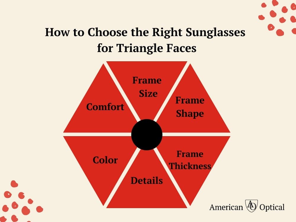 Selecting the right sunglasses for a triangle face shape involves careful consideration of some key factors: