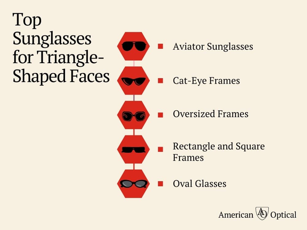 When shopping for sunglasses for triangle-shaped faces, it's important to consider how the sunglasses will align with these unique facial characteristics: